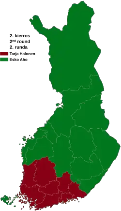 | Province | Halonen | Aho | Electorate | Votes | Valid | Invalid |