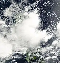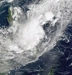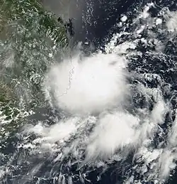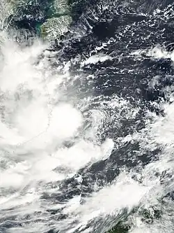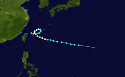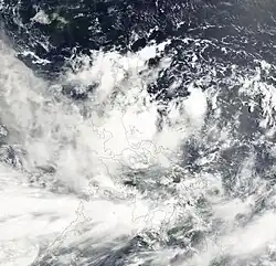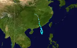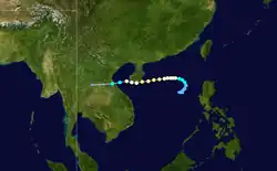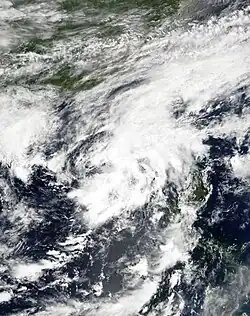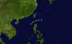 On May 15, a monsoonal trough associated with a low pressure area formed north west of the Philippines. On May 17 the low pressure area started to drift across the northern Philippines, and rapidly intensified into a tropical storm before quickly dissipating due to vertical wind shear on May 20. The remnants were soon absorbed by a non-tropical low on May 22.