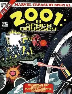 Marvel published its adaptation of director Stanley Kubrick and writer Arthur C. Clarke's classic science fiction film 2001: A Space Odyssey as an oversize Marvel Treasury Special.