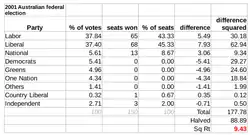 In fact, voter concern with terrorism in the aftermath of the September 11 attacks in the United States was noted, with the rise in the combined primary votes of the major parties from 79.61% at the previous election in 1998, to 81.17% at this election. There would be further increases in the combined major party primary vote in 2004 and 2007.