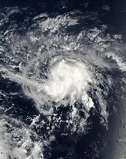 A tropical wave that crossed Central America organized and developed into a tropical depression on June 27.[17] Contrary to forecasts,[18] the depression did not strengthen further because of strong wind shear. By June 29, the depression had become a remnant low, which was observed as a swirl of clouds for a few more days before dissipating.[17]