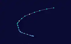 | Peak intensity | 110 km/h (70 mph) (10-min); 975 hPa (mbar) |