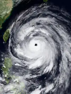 While passing the south of Taiwan, it dropped heavy rainfall peaking at 320 mm (13 in) in Pingtung County.[29] Rainfall in Japan peaked at 123 mm (4.8 in) at a station in Kagoshima Prefecture.[30] The threat of the storm prompted school closures and 20 airline flight cancellations.[31] Noguri injured one person, damaged one house, and caused about $4 million (¥504 million JPY) in agricultural damage.[nb 7][32]