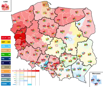 | Democratic Left Alliance – Labor Union | 2,752,318 | 24.65 | 189 |