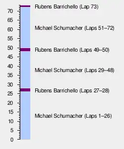Because they were driving lighter cars, the two Ferrari drivers began trading new race lap records as they lapped slower cars.[62][63][64] On lap 22, Panis was the first racer to make a scheduled pit stop, exiting after 8.4 seconds.[57][62] While Barrichello lost almost a second to teammate Michael Schumacher while lapping Irvine and McNish,[65] Villeneuve was the first of the leading drivers to make a pit stop four laps later.[63][66] He rejoined the track in 11th after a 9.4-second stop.[62] The Ferrari and Michelin-shod teams were employing different pit stop strategies – Ferrari were planning to make two pit stops while Michelin-shod teams planned for one, possibly due to protect their tyres from failing.[36] At the end of lap 27, Michael Schumacher made the first of two pit stops from the lead, remaining stationary for eight seconds before exiting the pit lane in second, ahead of Coulthard. Barrichello was promoted to the lead, setting the race's fastest lap of 1:12.754 on lap 27 before his pit stop at the end of the following lap. His first pit stop similarly took eight seconds, and he rejoined in second place, behind teammate Michael Schumacher.[57]