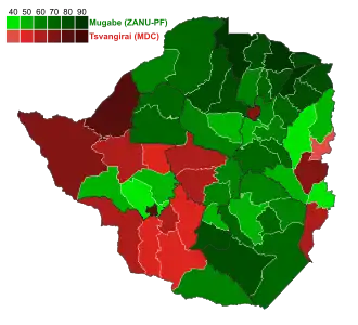 Presidential elections were held in Zimbabwe between 9 and 11 March 2002. The elections were contested by the incumbent president Robert Mugabe, Movement for Democratic Change leader Morgan Tsvangirai, ZANU–Ndonga leader Wilson Kumbula, Shakespeare Maya of the National Alliance for Good Governance and independent candidate Paul Siwela. Although Mugabe won with 56.2% of the vote, it was the closest presidential election to date.