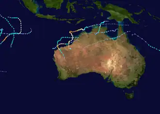 | Fay | 12–28 March | Category 5 severe tropical cyclone | 215 km/h (130 mph) | 910 hPa (26.87 inHg) | Northern Territory, Western Australia | Minimal | None | |