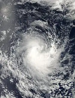 During 20 December, Tropical Disturbance 02F was last noted by the FMS, as it moved into the region from the South Pacific basin about 665 km (415 mi) to the northwest of Honiara in the Solomon Islands.[8] Tropical Disturbance 04F was first noted by the FMS within a broad area of low pressure during 29 December, while it was located on the border with the South Pacific basin, about 100 km (60 mi) to the south of Honiara in the Solomon Islands.[9] The system was located in a moderate area of vertical windshear and was poorly organised with atmospheric convection confined to the system's eastern semicircle.[9] The system subsequently moved south-eastwards and remained poorly organised, before it was last noted by the FMS later that day while it was located to the south of San Cristobal Island.[10]