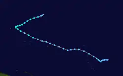 | Peak intensity | 95 km/h (60 mph) (10-min); 985 hPa (mbar) |