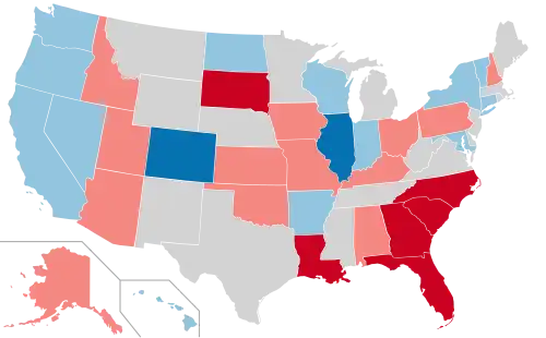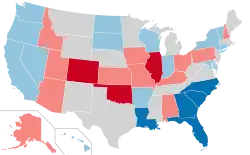 ![]() Results of the elections: Democratic gain Democratic hold Republican gain Republican hold No election | ||||||||||||||||||||||||||||||||||||||||||||||||||||||||||||||||||||||||||