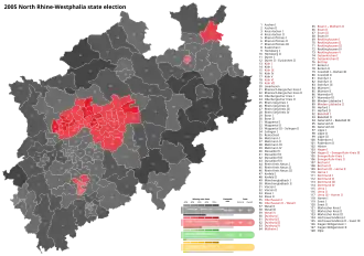 The 2005 North Rhine-Westphalia state election was held on 22 May 2005 to elect the 14th Landtag of North Rhine-Westphalia. The outgoing government was a coalition of the Social Democratic Party (SPD) and The Greens led by Minister-President Peer Steinbrück.