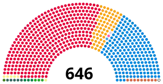 | Seats | 355 (55.2%) | 198 (30.7%) | 62 (9.6%) | 0 (0.0%) | 6 (0.9%) | 0 (0.0%) | 9 (1.4%) |