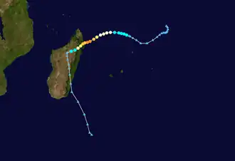 | Indlala | March 9–19 | Intense Tropical Cyclone | 175 km/h (110 mph) | 935 hPa (27.61 inHg) | Madagascar | $240 million | 150 | [6][9] |