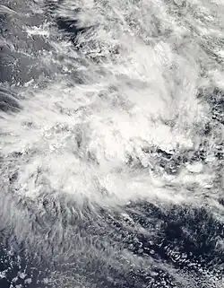 Early on 16 May, slightly more than two weeks after the official end to the Australian cyclone season, the Tropical Cyclone Warning Centre in Brisbane identified a tropical low east-southeast of Papua New Guinea. The low organised quickly in the Soloman Sea, and the Joint Typhoon Warning Center issued a Tropical Cyclone Formation Alert on it several hours later. TCWC Brisbane named the system Tropical Cyclone Pierre early the next day. The JTWC issued its first advisory on Tropical Cyclone 24P several hours later, as the cyclone moved westward. Later that day, Pierre encountered increased wind shear and dry air, disrupting the system and inhibiting its development.[8] These unfavourable conditions eventually caused the system to lose its convection and degenerate into a tropical low shortly before making landfall in Papua New Guinea.[9] After that, Ex-Tropical Cyclone Pierre entered the northern part of the Coral Sea and threatened to produce heavy rainfall and thunderstorms with damaging wind gusts across Cape York Peninsula.[10]