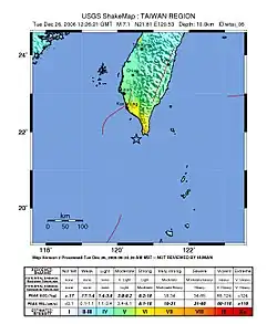 - ^ Lee, S.-J.; Liang, W.T.; Huang, B.S. (2008). "Source Mechanisms and Rupture Processes of the 26 December 2006 Pingtung Earthquake Doublet as Determined from the Regional Seismic Records" (PDF). Terrestrial, Atmospheric and Oceanic Sciences. 19 (6): 555–565. Bibcode:2008TAOS...19..555L. doi:10.3319/TAO.2008.19.6.555(PT). S2CID 20804787.