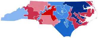 The Democrats gained a seat, becoming the largest party in terms of both representatives and popular vote. All incumbents ran again, with twelve of the thirteen winning re-election. Republican incumbent Charles H. Taylor lost the 11th district, while fellow Republican Robin Hayes came close to losing in the 8th.