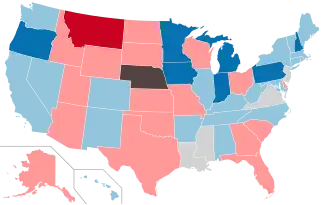 Map of lower house elections: Democrats gained control Democrats retained control Republicans gained control Republicans retained control Non-partisan legislature No regularly-scheduled elections |