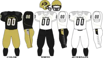 - ^ a b c d e f Plati, David (June 2, 2007). "CU Unveils New Football Uniforms". University of Colorado–Boulder Department of Athletics. Archived from the original on June 6, 2011. Retrieved June 12, 2007. This link also discusses the history of CU's football uniforms.