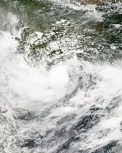 On July 1, the Naval Research Laboratory (NRL) began to track a developing disturbance in the north Bay of Bengal. Following the formation of a low pressure area and circulation centre, the India Meteorological Department (IMD) initiated advisories, declaring it a depression, as it was located about 150 km (93 mi) southeast of Kolkata, West Bengal, in India, along the Bangladeshi coast.[56] The system was noted in the Significant Tropical Weather Advisory issued by the Joint Typhoon Warning Center (JTWC) that same day. The JTWC commented that the consolidated circulation centre was already overland, in southwest Bangladesh.[57] The next day, on July 5, as the depression tracked northwestward into Gangetic West Bengal, the IMD upgraded it to a deep depression.[58] It reached close to Bankura early on July 6, moving westward.[59] Phoolberia in West Bengal received 450 mm of rainfall in 48 hours between 5 and 6 July 2007.[12]
