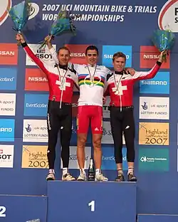 ![]() Elite men's cross-country podium at the 2007 UCI Mountain Bike & Trials World Championships | |