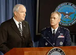 - ^ a b US DoD, "DoD News Briefing with Secretary Gates from the Pentagon", Military Times, "Moseley and Wynne forced out", Shanker, "2 Leaders Ousted From Air Force in Atomic Errors".