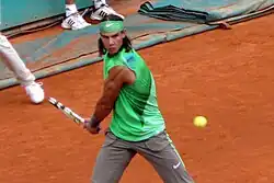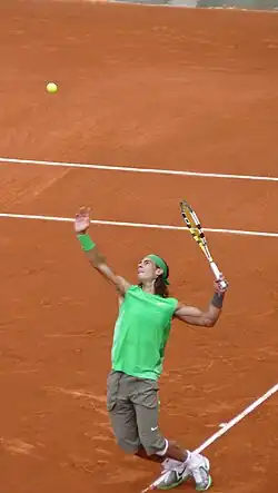 ![]() Rafael Nadal at the 2008 French Open. | |