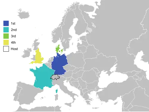 There were two qualifying rounds, and four teams qualified for the final round, played in Switzerland.