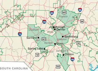 This district includes several suburban and rural areas near Raleigh, Rocky Mount and Fayetteville. It has been represented by Democrat Bob Etheridge since 1997. The district is a swing district on paper (CPVI of R+3); it narrowly supported Bill Clinton in 1992 and 1996, and gave equally narrow margins to George W. Bush in 2000 and 2004. However, Etheridge is very popular in this area. In 2008, he faced his 2006 opponent, Republican Dan Mansell, and Libertarian Will Adkins. CQ Politics forecasted the race as 'Safe Democrat'.