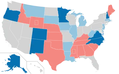 Going into these elections, the Senate consisted of 49 Democrats, 49 Republicans, and 2 Independents who caucused with the Democrats, giving the Democratic caucus the slightest 51–49 majority.[2] Of the seats up for election in 2008, 23 were held by Republicans and 12 by Democrats. The Republicans, who openly conceded early on that they would not be able to regain the majority in this election,[3][4] lost 8 seats. Democratic candidates defeated Republican incumbents in Alaska, New Hampshire, North Carolina, Oregon, and, after a lengthy recount process, Minnesota. Additionally, they won Republican-held open seats in Colorado, New Mexico, and Virginia.