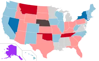Regularly scheduled elections were held in 85 of the 99 state legislative chambers in the United States. Nationwide, regularly scheduled elections were held for 5,948 of the 7,383 legislative seats. Many legislative chambers held elections for all seats, but some legislative chambers that use staggered elections held elections for only a portion of the total seats in the chamber.[5] The chambers not up for election either hold regularly scheduled elections in odd-numbered years, or have four-year terms and hold all regularly scheduled elections in presidential midterm election years.