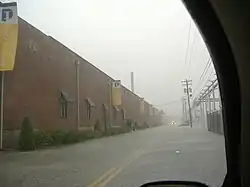 Debris, numerous automobile accidents, and abandoned vehicles caused I-71, I-64, I-65, and portions of I-264 and I-265 to shut down.[10][8] Surrounding cities, including New Albany, Jeffersonville, and Sellersburg, Indiana were also affected.[1] Additionally, most city streets were rendered impassable and several other important roadways were closed for hours.[8] Across both Indiana and Kentucky, the massive amount of water entering the cities' underground viaducts caused a pressure build-up, blowing off a number of man-hole covers, which created dangerous road hazards.[4]