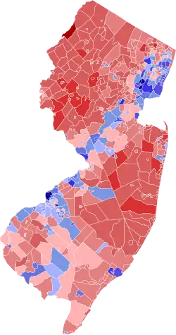 Christie: 40–50% 50–60% 60–70% 70–80% 80–90% >90% Corzine: 40–50% 50–60% 60–70% 70–80% 80–90% >90% Tie: 40–50% | |||||||||||||||||||||||||