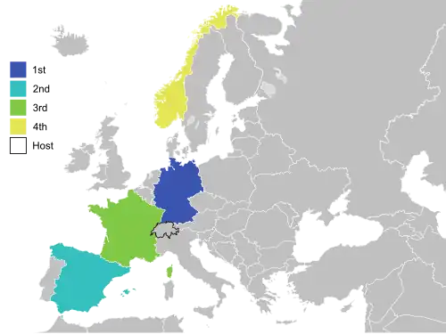 There were two qualifying rounds, and four teams qualified for the final round, played in Switzerland.