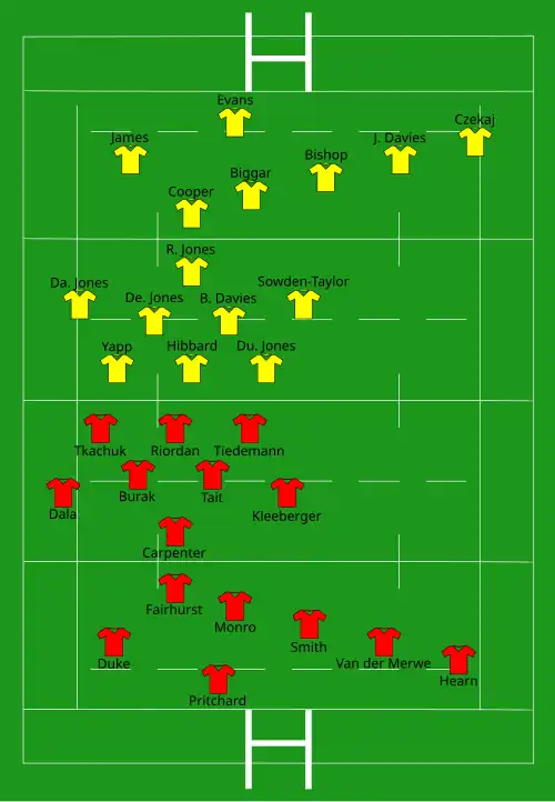 | Try: Duke 42' c Fairhurst 58' c Con: Pritchard (2) 43', 59' Pen: Pritchard (3) 9', 14', 30' | Report | Try: Czekaj 16' c James 48' c Con: Biggar (2) 17', 49' Pen: Biggar (6) 21', 27', 33', 53', 56', 72' |
