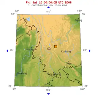 - ^ "Magnitude 5.0 – YUNNAN, CHINA". United States Geological Survey. Archived from the original on July 11, 2009. Retrieved 10 July 2009.
