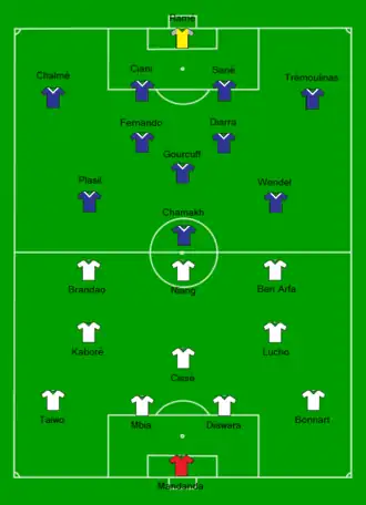Bordeaux was without vice-captain and centre-back Marc Planus due to a knee injury.[6] The club was also without France under-21 international Grégory Sertic, who will miss a month after breaking a toe on his right foot in the club's match against Lille held the previous weekend, as well as midfielder Abdou Traoré, who is out with a hamstring injury.[7][8]