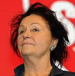 The left-wing[22] party The Left nominated Luc Jochimsen, a member of parliament and former editor-in-chief of public broadcaster Hessischer Rundfunk.[23] After her nomination, Jochimsen opined that the German Democratic Republic was not a "state of injustice", despite "committing inexcusable injustice towards its citizens".[24] She withdrew after the second ballot, and urged her party members to abstain in the third ballot.[25]