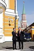 Chinese leader Hu Jintao confirmed his attendance at the parade on 3 May. The following day Slovak President Ivan Gašparovič's attendance was confirmed.[7] Other world leaders who confirmed their attendance included Czech President Václav Klaus,[8] French President Nicolas Sarkozy,[8] Italian Prime Minister Silvio Berlusconi,[8] Serbian President Boris Tadić,[9] Bulgarian President Georgi Parvanov,[10] and Vietnamese President Nguyễn Minh Triết,[11] Leaders from Armenia, Azerbaijan, Estonia, Greece, Israel, Kazakhstan, Latvia, Mongolia and Slovenia also confirmed their attendance.[9] On 8 May, Sarkozy and Berlusconi announced that they wouldn't be attending the parade in Moscow, so that they could deal with the euro area crisis.[12][13]