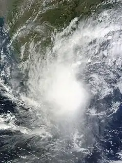 On October 13, the India Meteorological Department (IMD) upgraded an area of low pressure to a depression, giving it the designation "BOB 03". At that time, the depression was located approximately 700 kilometres (430 mi) east of Visakhapatnam.[32] Late on that day, the IMD reported that the system had further intensified.[33] The IMD upgraded the depression into a deep depression on October 15.[34] The system was forecast to make landfall between Gopalpur and Paradip near Puri late on that day.[35] Instead, it made landfall very close to Gopalpur.[36] Early on October 16, BOB 03 started weakening.[37] Later on that day, the depression degenerated into a remnant low.[38] The remnants continued to weaken until it dissipated completely that day.
