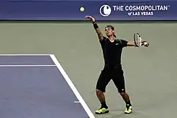 At the 2010 US Open, Nadal was the top seed for the second time in three years. He defeated Teymuraz Gabashvili, Denis Istomin, Gilles Simon, 23rd seed Feliciano López, 8th seed Fernando Verdasco, and 12th seed Mikhail Youzhny, all without dropping a set, to reach his first US Open final. By doing that he became the 8th man in the Open Era to reach the final of all four majors at the age 24; the second youngest to ever do so, behind only Jim Courier. In the final, he defeated 3rd seed Novak Djokovic (6-4, 5-7, 6-4, 6-2), which completed the Career Grand Slam for Nadal, and he became the second male after Andre Agassi to complete a Career Golden Slam.[28] Nadal also became the first man to win Grand Slams on clay, grass, and hard court surfaces in the same year (later accomplished by Djokovic in 2021 after winning the Australian Open, French Open and Wimbledon Championships), and the first to win the French Open, Wimbledon, and the US Open in the same year since Rod Laver in 1969. With the US Open win, Nadal became, along with Mats Wilander, the only male players to win at least two Grand Slams each on clay, grass, and hard court in their careers (Novak Djokovic later completed this feat with his second French Open title in 2021). After all that, he also became the first left-handed man to win the US Open since John McEnroe in 1984.[29] This victory also clinched the year-end number one ranking for 2010, making Nadal the third player (after Ivan Lendl in 1989 and Roger Federer in 2009) to regain the year-end number one ranking after having lost it.[30]