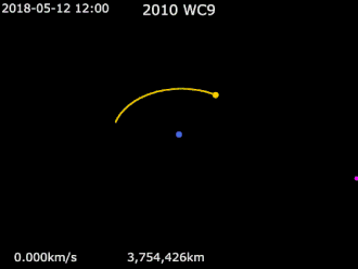 {{cite web}}: CS1 maint: bot: original URL status unknown (link) - ^ "2010WC9 Ephemerides for 15–16 May 2018". NEODyS (Near Earth Objects – Dynamic Site). Retrieved 14 May 2018.