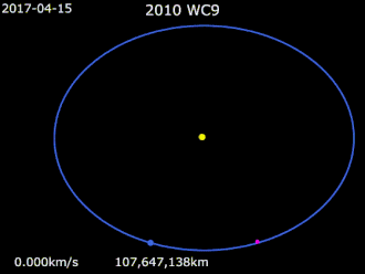 ![]() Orbit of 2010 WC9 with positions before 2018 flyby | |