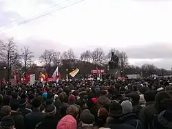 The 2011–2013 Russian protests, which some English language media referred to as the Snow Revolution (Russian: Снежная революция, romanizedSnezhnaya revolyutsiya),[13] began in 2011 (as protests against the 2011 Russian legislative election results) and continued into 2012 and 2013. The protests were motivated by claims of Russian and foreign journalists, political activists and members of the public that the election process was fraudulent.[14] The Central Election Commission of Russia stated 11.5% of official reports of fraud could be confirmed as true.[15]