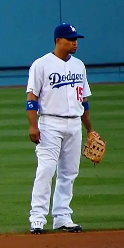 On April 22 the Dodgers opened a six-game road trip by beating the Chicago Cubs 12–2.[60] The next day, the Cubs scored five runs off Matt Guerrier in the bottom of the eighth to come from behind to beat the Dodgers 10–8. In the game, Andre Ethier extended his hitting streak to 20 games.[61] The Dodgers scored five runs in the first inning to back Kuroda's solid 6 2/3 innings pitched as they won the series finale 7–3 over the Cubs.[62] The Dodgers next traveled to Florida to take on the Marlins. They lost the opener after a ninth-inning fielding error by shortstop Jamey Carroll allowed the tying run to score in the ninth inning. A batter later, Omar Infante singled in the winning run off Jonathan Broxton and the Marlins came from behind to win 5–4.[63] On April 26, Ethier extended his hitting streak to 23 games, setting an MLB April record but the Dodgers offense struggled and the team lost to the Marlins 4–2.[64] The Dodgers won the last game of the series 5–4 on an Andre Ethier home run in the 10th inning. Vicente Padilla pitched the bottom of the 10th, for his first save since 2000.[65]