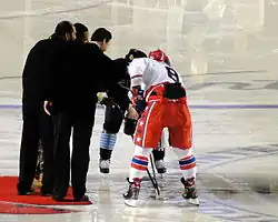 - ^  Brent Johnson dressed for the Pittsburgh Penguins as the back-up goalie and did not enter the game.