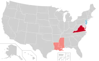 The 2011 elections were the first held after the release of the results of the 2010 census; each of the four states up for election in 2011 attempted to draw new maps in accordance with the new population data. Republicans exercised full control of redistricting in Louisiana after having taken control of both chambers of the legislature in late 2010 and early 2011.[5] Both parties shared control of the redistricting process in Mississippi, New Jersey, and Virginia, with varied results coming out of each state.