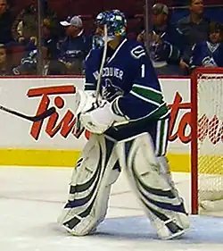 After being replaced as starter for the final three playoff games, Roberto Luongo said that he would be willing to waive his no-trade clause if asked.[9] Following the re-signing of Cory Schneider to a three-year $12 million extension, trade rumors increased.[10] It was later reported that Luongo wanted to be traded and that "it was time to move on".[11][12] Though as training camp approached, Luongo had not been traded. He indicated that he would have no issues returning to the Canucks. Gillis further stated that although he had received several "strong" offers, the Canucks were not having a "fire sale" for Luongo.[13] Doug MacLean on Sportsnet's Hockey Central reported that a trade was in place to send Luongo to the Toronto Maple Leafs. However, Luongo, believing the Florida Panthers, his preferred destination, were going to make a deal for him, refused to waive his no-trade clause.[14] Luongo later said that he never turned down a trade.[15]
