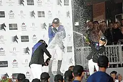 In the jump-off, last year's GCT ranking winner, Edwina Tops-Alexander, rode a fast faultless round with her 16-year-old gelding, Itot du Château. Next Christian Ahlmann started in the jump-off: with a high speed he missed the right distance to the second obstacle. At the end he had a result of eight points with Codex One. Also, all other riders who started in this jump-off could not reach the result of Tops-Alexander, so she won the GCT Grand Prix of Qatar.[6]