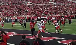 Starting quarterback Seth Doege threw for a career-high 504 yards, and tied his career high with 6 touchdown passes.[20] The team was also named the Tostitos Fiesta Bowl National Team of the Week. Tech's defense gave up 275 yards to Heisman Trophy front-runner Geno Smith, but only one touchdown pass. Three of Doege's touchdown passes went to Darrin Moore, and Jace Amaro had 5 catches for 156 yards and one touchdown. Sadale Foster's 53-yard touchdown run shortly before halftime gave the Raiders a 35–7 halftime lead as Texas Tech won its Homecoming game.[21] Doege earned Big 12 Offensive Player of the Week honors, as well as being named the Davey O'Brien Quarterback of the Week. Safety Cody Davis was named the Big 12 Defensive Player of the Week. CBS Sports named Tuberville the Big XII "Coach of the Week" after the victory.[22]