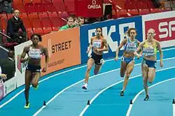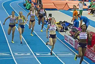 ![]() Medalists Perri Shakes-Drayton, Eilidh Child, and Moa Hjelmer and the other runners at the finish of the final | ||||||||||